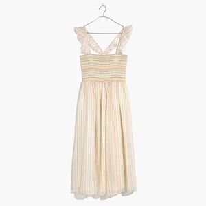 Madewell - Ruffle-Strap Smocked Dress in Rainbow Stripe - Size XXS