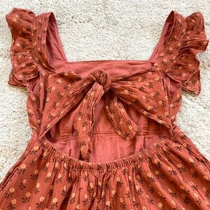 Block-printed by hand for a one-of-a-kind look, this tiered midi dress has a square neckline, playful flutter sleeves and a cutout tie back. It has pockets and is lined for extra flare!