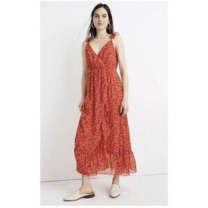 Madewell Ruffle-Strap Wrap Dress in Metallic-Striped Prairie Posies. Dress is made of polyester and metallic thread and is a woman's size 12. Org. list price $158.