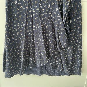 This faux-wrap midi skirt has a vintage-y feel thanks to its sweet floral print and a swingy ruffle in front.
