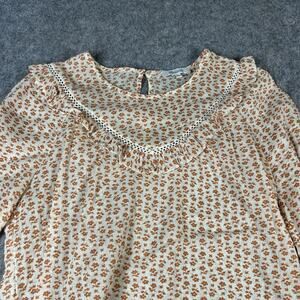 Madewell Ruffle-Yoke Prairie Top Small Cutout Blooms Rust Boho Cottagecore