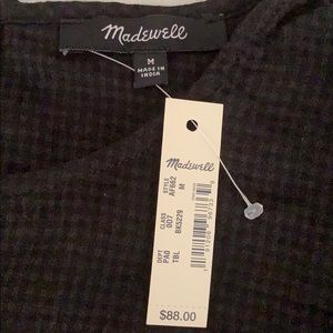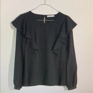 Madewelll black top with romantic ruffles cascading down the front, this black famine top is perfect for all occasions. Long sleeves, looks nice tucked into high rise jeans.