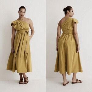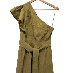 Madewell Ruffled One-Shoulder Midi Dress In Olive Surplus Size 12