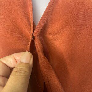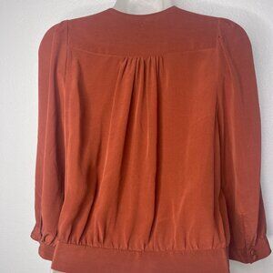 Madewell Rust 3/4 Sleeve 100% Silk Wrap Blouse V-Neck Tie Waist Detail SZ M