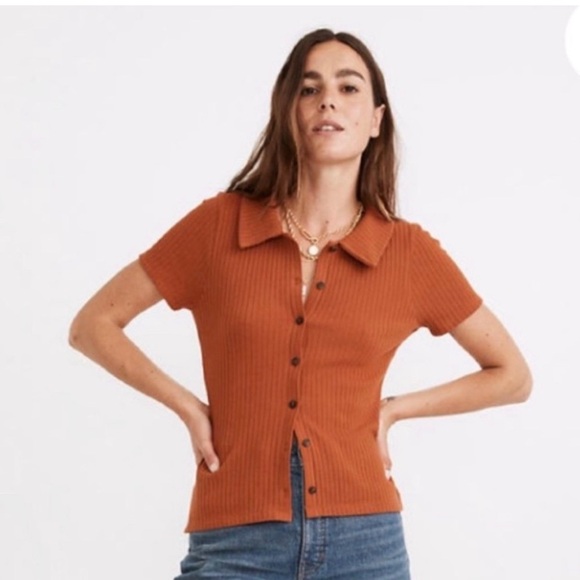 Madewell Rust Button-Down Ribbed Top