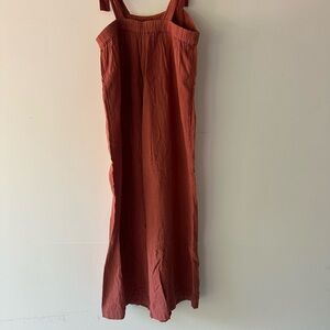 Stylish rust jumpsuit by Madewell. Features wide legs and adjustable straps. Perfect for casual outings. Relishing because it doesn’t fit me right.