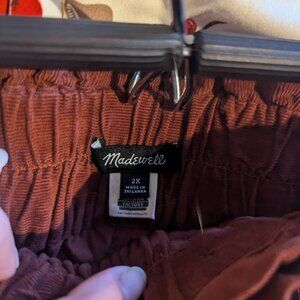 Madewell mini-wale corduroy skirt, 2X. Non-functional buttons. Waist 20-29" across, 19" long. EUC.