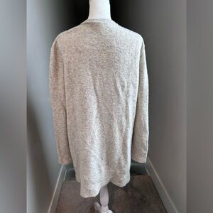 Beige / gray color. Item E0185. There is some minor piling. approx 23” pit2pit, 32.5” long, & 21” sleeve from shoulder seam