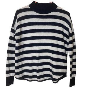 Madewell S Navy White Stripe Mock Neck Sweater Wool Alpaca Blend Preppy