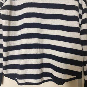 Classic navy-and-white striped sweater with a cozy mock neck and soft wool-alpaca blend—think “Parisian/coastal” meets everyday comfy. Easy fit, rib trim, perfect with denim or a slip skirt. Madewell Small. Good condition.