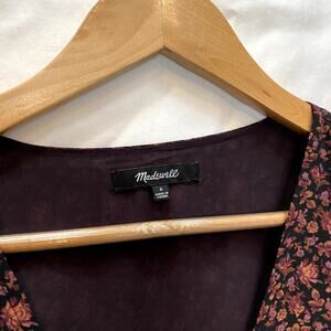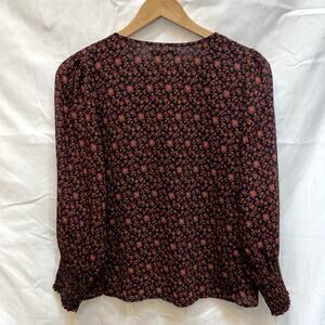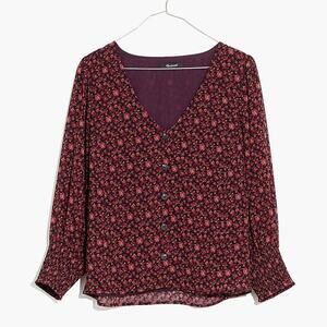 Madewell S red Georgette Smocked-Cuff Button-Front Top