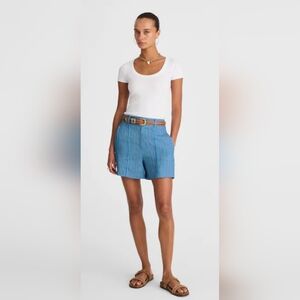 Madewell SEALED! NWT! The Pintucked Shorts in 100% Linen in Delphinium Blue. 12.
