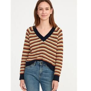 Madewell SZ S Arden V-Neck Crop Striped Pullover Sweater In Stripe