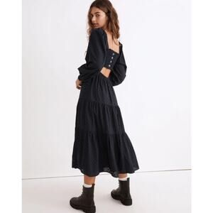 Romantic, feminine, and effortlessly wearable — this Madewell Lucie Midi Dress is crafted from textured cotton eyelet with a flattering square neckline, smocked bodice, and voluminous bracelet-length sleeves. The tiered A-line skirt adds easy movement, while the back cutout detail offers a flirty, modern touch.