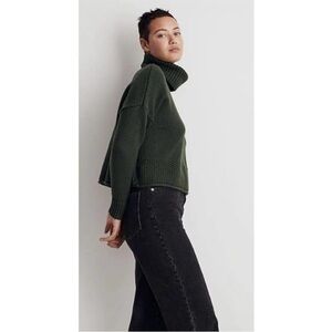 Madewell Sadler Turtleneck Sweater Size Large Deep Forest Green Merino Wool Boxy