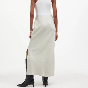 Madewell Satin Maxi Slip Skirt Silver Side Slit Pull On Elastic Waist Size 14