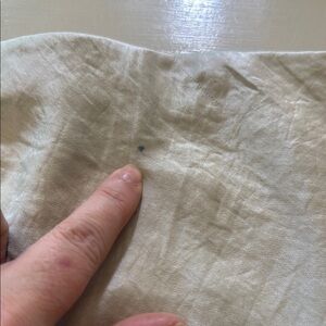 There is a spot on the underside of skirt on the bottom, also I see a pen mark in the front that bled through from where the tag was marked through. Please see photos