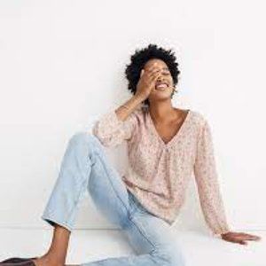 Madewell Satin Puff Sleeve V-Neck Top in Baby Breath Size XS