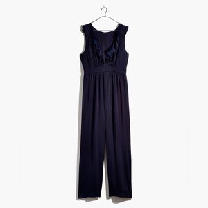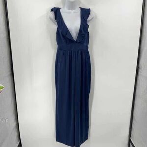 Madewell Satin Ruffle Neck Jumpsuit in Navy Blue Womens Size 2