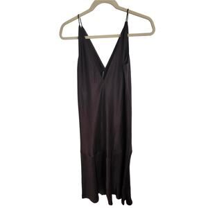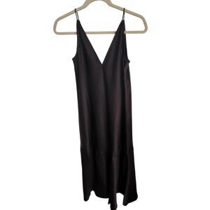 Madewell Satin Sleeveless Maxi Slip Dress V Neck Carob Brown Front Slit XS 2