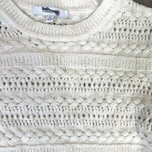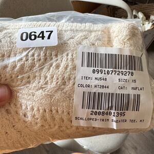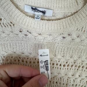 Madewell Scalloped-Trim Sweater Tee SZ XS Sand Crewneck Crop Open Knit Pullover