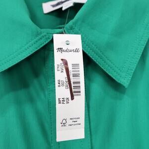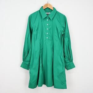 Madewell Seamed Long Sleeve Mini Shirtdress Poplin Verdant Green Size 8 NWT