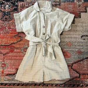 Madewell Seersucker Camp Romper in Ashen Sage XS