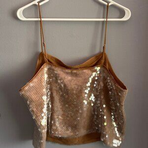 Madewell Sequin Square Neck Camisole In Fallen Timber, Size XL NWT