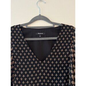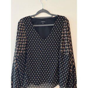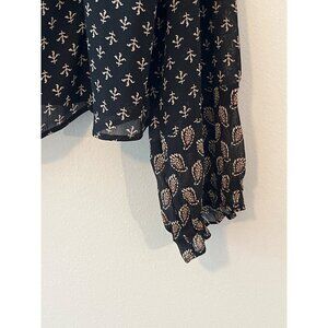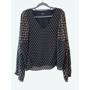Madewell Sheer-Sleeve Brushstroke Paisley Mix Long Sleeve Blouse Black Brown L