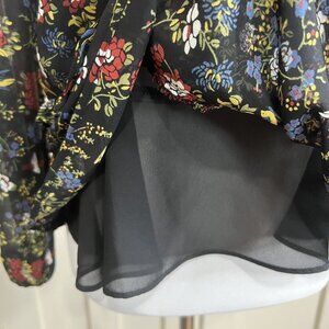 Madewell Sheer-Sleeve Ruffle Peplum Top Blouse Finch Moody Floral Black Small