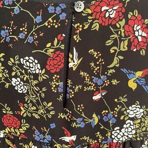 Sheer-Sleeve Ruffle Peplum Top in Finch Floral. feminine top in a vintage-y flora-meets-fauna print (how cute are those little birds?). With sheer sleeves and a ruffled peplum. Button keyhole back neckline closure. Elastic sleeve cuffs.