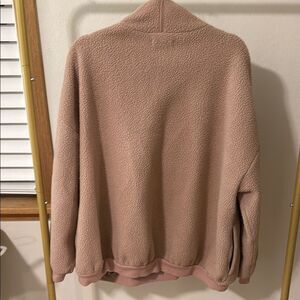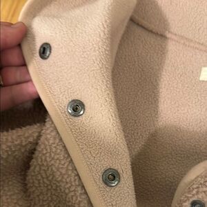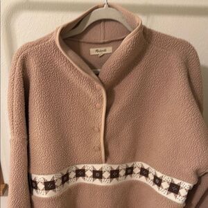 Madewell (re)Sourced Sherpa Popover. Size L. Generous fit! Measurements available upon request. Cozy fleece pullover with button-up collar. Features a charming patterned stripe across the chest. Perfect for casual wear!