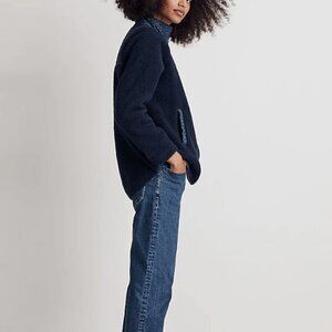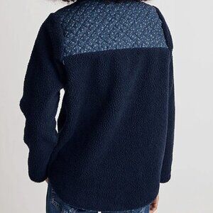 Madewell (Re)sourced Sherpa Zip-Front Jacket in navy with ditsy floral panels and a front pocket. Size XS.