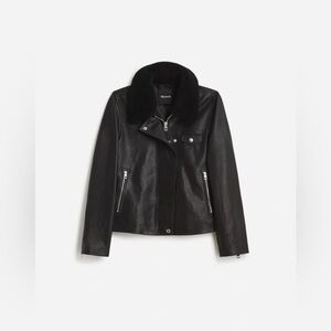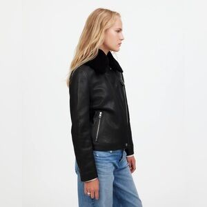 Madewell Sherpa-Collar Asymmetric Zip-Front Jacket in Leather NS382