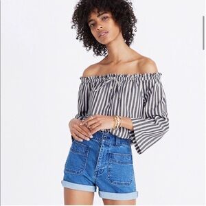 Madewell Shimmer Stripe Off the Shoulder Top Fluted Sleeve