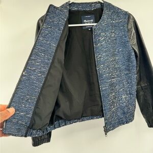 Madewell Shimmer Weave Bomber Jacket Leather Sleeves Two Way Zip Womens Size S