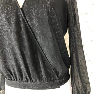 Madewell Shimmer Wrap Top Black Blouse Size Small