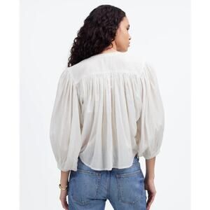 Madewell Shirred Balloon Sleeve Crewneck Button-Up Top Sz 2XS White Lightweight