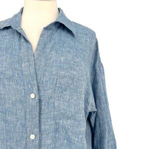 Madewell Shirred Button-Up Shirt In Linen-Cotton Blue Size Large NWT