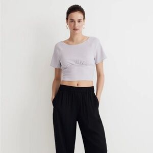 Madewell Shirred Crewneck Crop Top in Dusty Lavender Size Small