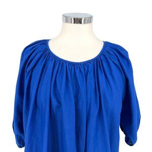 Madewell Shirred Puff-Sleeve Top Blue Cotton Silk Size Small NWT