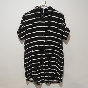 Madewell Shirt Dress Small Courier Break Stripe Black White Pockets Button Down