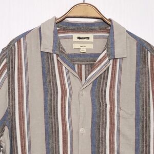 Madewell Shirt Men’s Small Beige Easy Short-Sleeve Stripe Linen Faded Wicker New