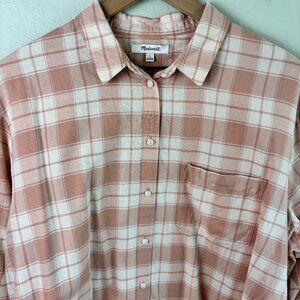 Madewell Shirt Peach Plaid Cotton Button-Down Long Sleeve Size L
