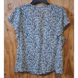 This blouse from Madewell isin excellent preowned condition - No flaws. Cream with Multicolored Floral Pattern. V-Neck Faux Button Up. Flutter Sleeves. Side Zipper Closure. Size 18.