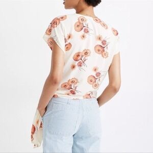 Madewell Shirt Womens Small Cream Orange Sash Tie Wrap Top Dutch Dandelion Print