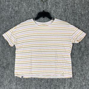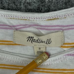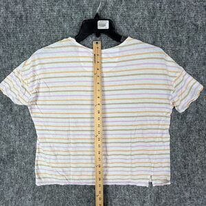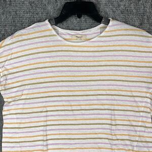 Madewell Shirt Womens Small Striped Short-Sleeve Crew-Neck Oversized Linen Blend