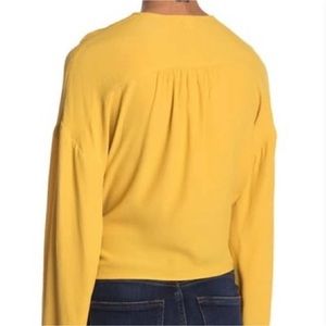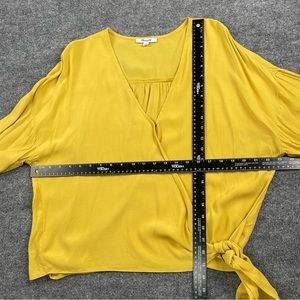 Madewell Shirt Womens XL Raelynn Yellow Wrap Blouse Side Tie Viscose V-Neck Style# M3230. Good pre-owned condition. Faint mark on shoulder. See pictures for details. See photos for measurements. Ships quickly from smoke-free home.