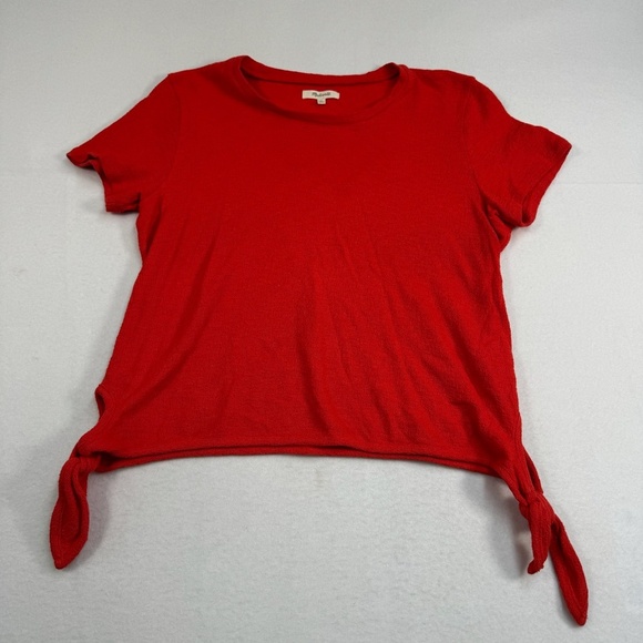 Madewell Short Sleeve Side Tie Bottom Womens Size Medium Red Guaze TexturedMadew