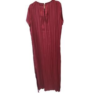 Madewell Short Sleeve Slip Midi Dress in Plisse - Mulberry Wine - Small